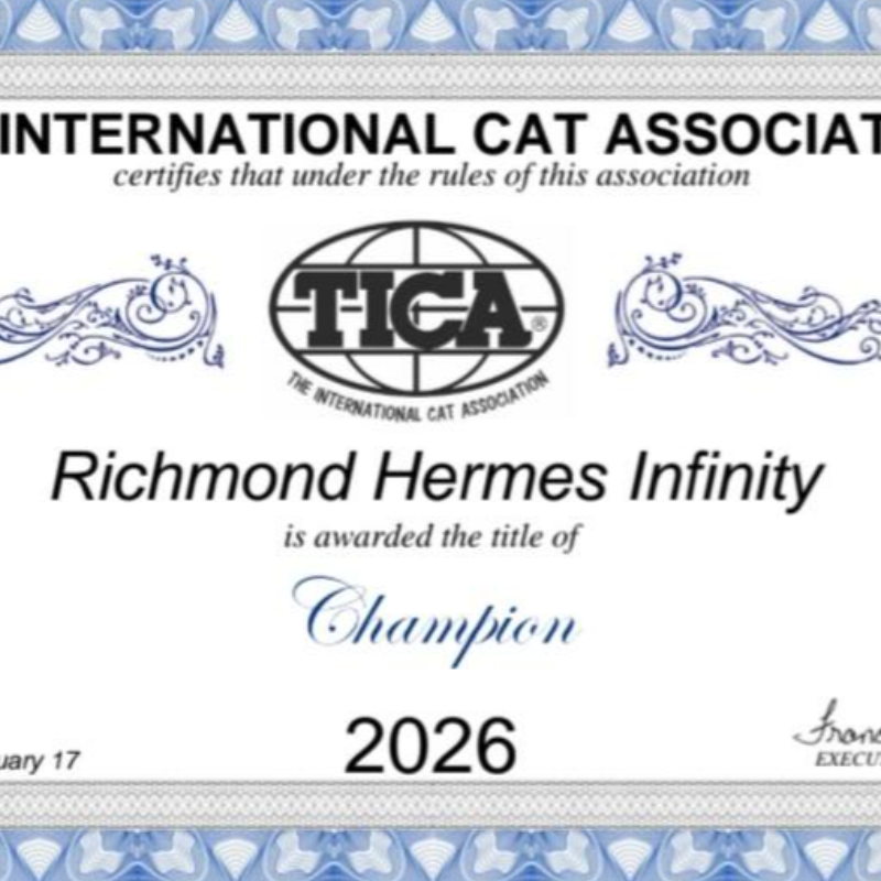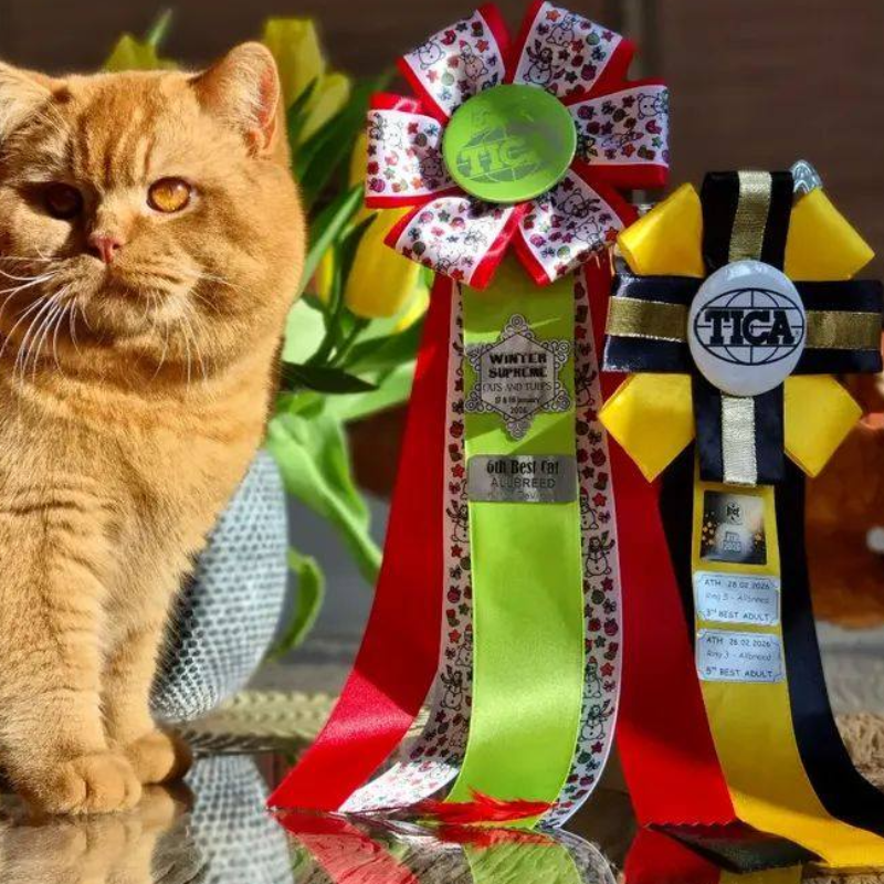Prachtige Rode kater ,carrrier direct Cinnamon .Gen Tik ..met unice Cristal Flames x Wabisabi bloodline ,Super karakter ,Jaar oud . TICA Grand Champion Titel 2026 ,HCM,PKD, Filv Fip Negative 2026