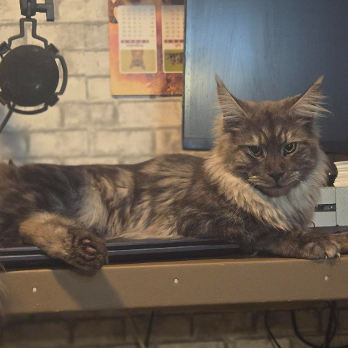 Hij is ook kampioen op de kattenshow en is heel breed gebouwd. Duke is een grote maar extreem lieve kater.