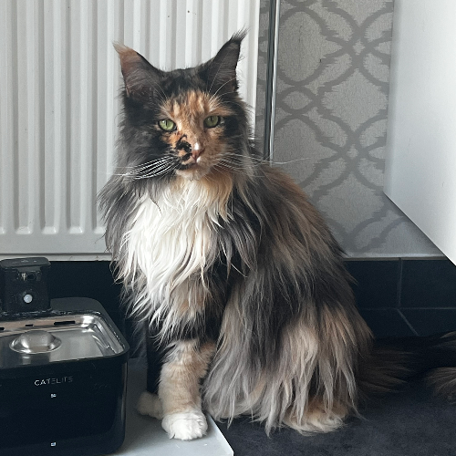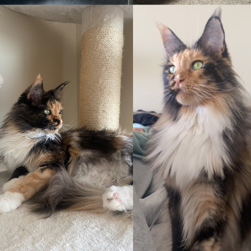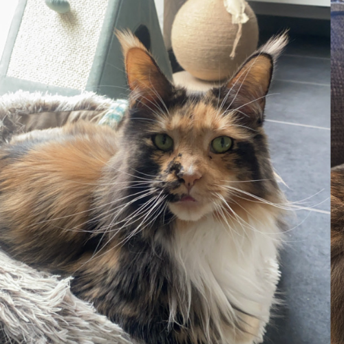 Freya is een raszuivere Maine Coon, is heel zacht van karakter, komt heel graag knuffelen en zou het liefst van al 24/7 aandacht en aaitjes willen. Een echte fletser.