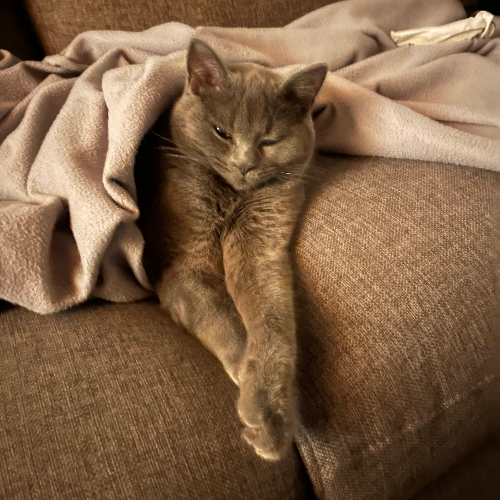 Dit is Pookie, een superlief mannetje met een bijzondere mix: mama is een Britse korthaar en papa een Scottish Fold–Ragdoll mix. Hij is speels, dol op eten. Dutjes naast zijn baasje vindt hij onweerstaanbaar.Herplaatsing wegens allergie van mijn mama