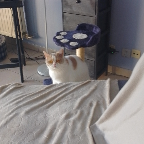 Ze is een rustige, gesterilseerde poes met zachtaardig karakter, gewoon aan een kleine hond . Hervaccinatie rond 28 /06 . Wegens familiale omstandigheden , meer info indien interesse, kan ze niet bij ons blijven.