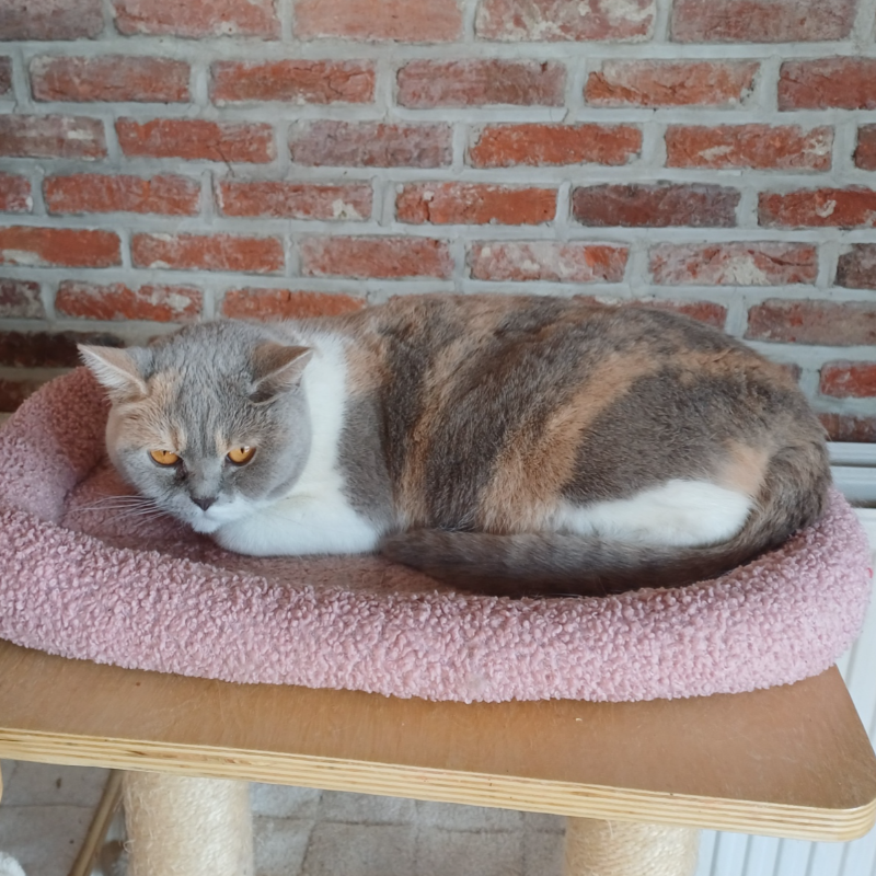 Tricolor gesteriliseerde poes, mag alleen verhuizen samen met haar vriendinnetje Jacyntha Lyka Van De Volle Maan (zie elders in Kitten te koop). Stamboom, inentingen en ontworming in orde, attest echo HCM en PKD 29/11/2024, attest DNA PKD. Mag met pijn in ons hart verhuizen omdat de groep gesteriliseerde poezen te groot wordt. Prijs 500 euro.
