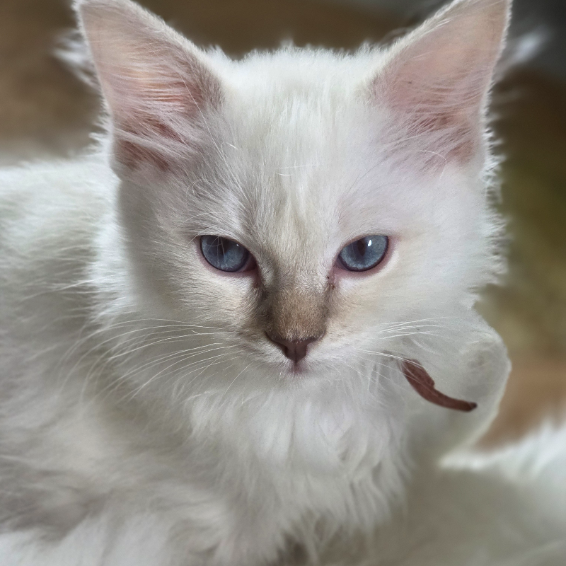 Prue is onze diva, een speels kattinnetje wat smorgens gelijk bij je op schoot komt zitten