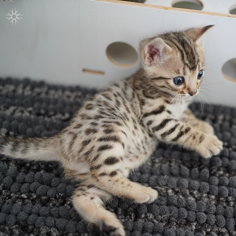Prachtig nestje bengaalkittens uit toplijnen, geboren en opgegroeid in huiselijke omgeving. Deze kittens combineren een wild, elegant uiterlijk met een zacht, nieuwsgierig karakter en stevige, correcte bouw. Ze krijgen hoogwaardige rauwe voeding, worden liefdevol gesocialiseerd en groeien op met veel zorg en aandacht. Met hun mooie contrasten, sterke constitutie en evenwichtig temperament zijn ze ideale gezelschapsdieren voor wie op zoek is naar een kwalitatieve en bijzondere bengal. Gezondheid, karakter en uitstraling staan bij ons centraal. Wij fokken met zorg en passie, volledig volgens het nieuwe Vlaamse fokkerijbesluit – inclusief alle verplichte gezondheidstesten en welzijnsregels.