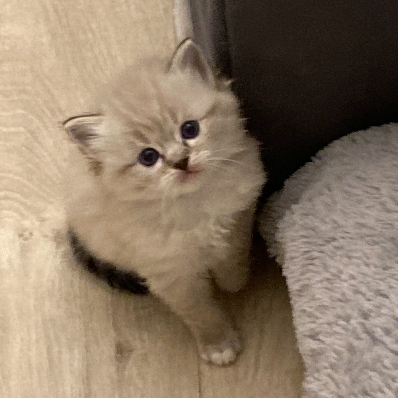 Rustig lief, speels poesje. Houdt van knuffeltjes en houdt zich kranig staande tussen 3 broers.