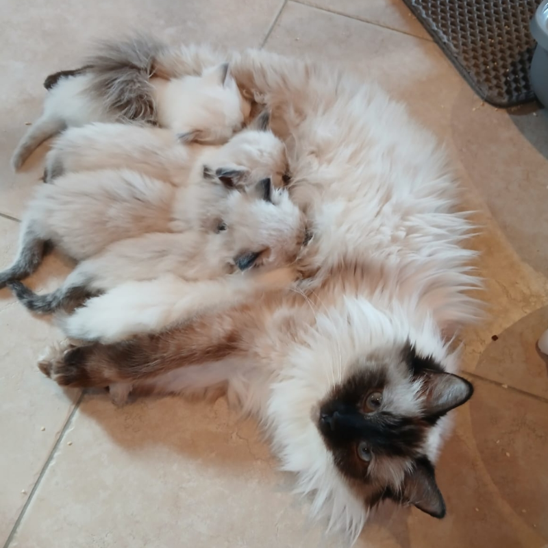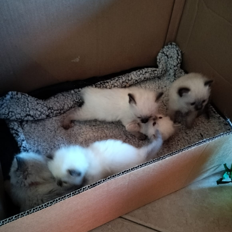 Babe en Sammy hebben ons verblijd met 5 prachtige Ragdoll kittens. Ze groeien samen op met andere katten en zijn super sociaal en aanhankelijk. De kittens zijn gevaccineerd, gechipt, ontwormd en klinisch gekeurd door de dierenarts. Net zoals de ouders krijgen ze een officiële stamboom geschonken door BCF. De ouders zijn getest op HCM/PKD. De kittens zijn gecontroleerd met ouderschapsverificatie via DNA. De kittens worden ook gesteriliseerd of gevaccineerd voor Rabiës indien nodig. Bij elk kitten wordt er een starterspakket meegegeven van Royal Canin. Ze kunnen het nest verlaten vanaf 08/04/2026. Bij reservering wordt er een aanbetaling van 250 euro gevraagd. Bezoek is altijd mogelijk. Bereikbaar op +32492945384 of johan_debaene@telenet.be