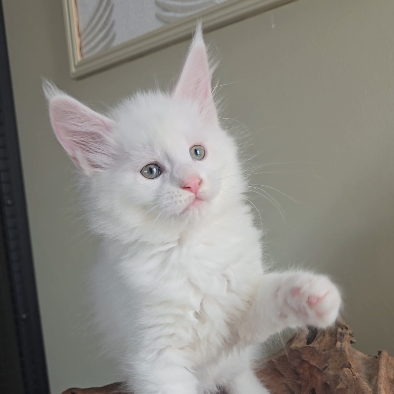 Solid White Maine Coon uit toplijn - neem een kijkje op onze site voor alle informatie.