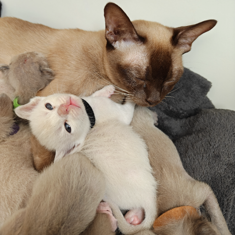 We hebben momenteel bij ons thuis 2 nestjes Burmese kittens. 5 april en 12 april geboren. Enkele van deze leuke kittens zoeken nog een gouden mandje.